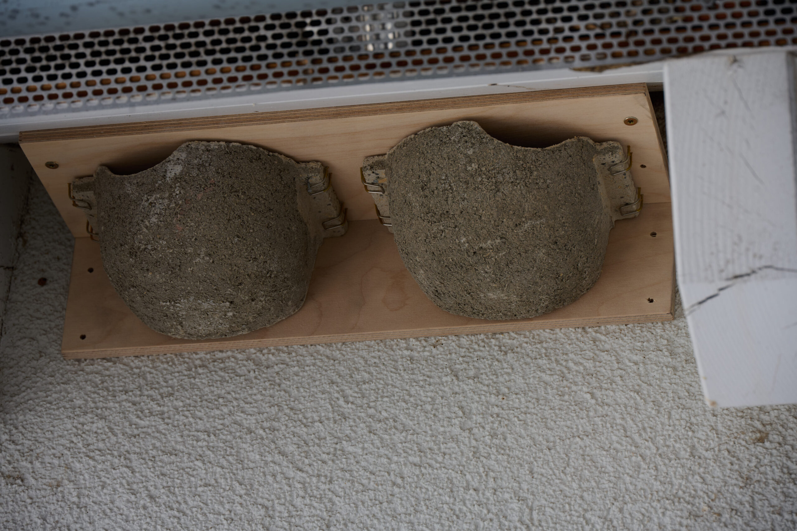 - Kugelnest: Diese Nisthilfen sind fast geschlossen und besitzen lediglich ein kleines Einflugloch an der Oberkante. Oft werden sie als Doppelnester angeboten, da Mehlschwalben gesellige Koloniebrüter sind.