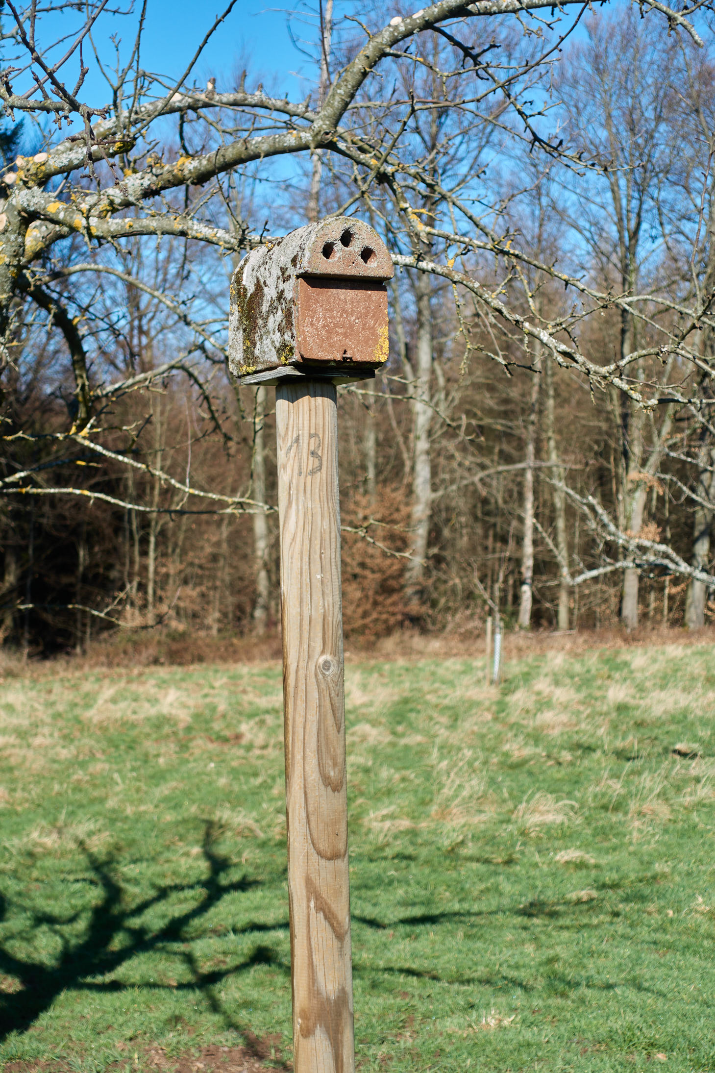 Stabilität und Wartung: Nistkästen in der Flur sind stärker der Witterung ausgesetzt. Robuste Materialien wie Holzbeton haben sich hier besonders bewährt, da sie langlebig und spechtsicher sind.